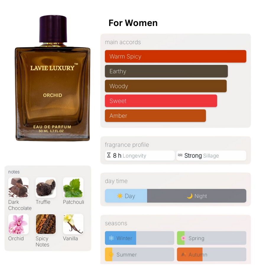 LV Orchid is inspired from Black Orchid by Tom Ford is a Amber Floral fragrance for women.Top notes are Truffle, Gardenia, Black Currant, Ylang-Ylang, Jasmine, Bergamot, Mandarin Orange and Amalfi Lemon; middle notes are Orchid, Spices, Gardenia, Fruity Notes, Ylang-Ylang, Jasmine and Lotus; base notes are Mexican chocolate, Patchouli, Vanille, Incense, Amber, Sandalwood, Vetiver and White Musk.